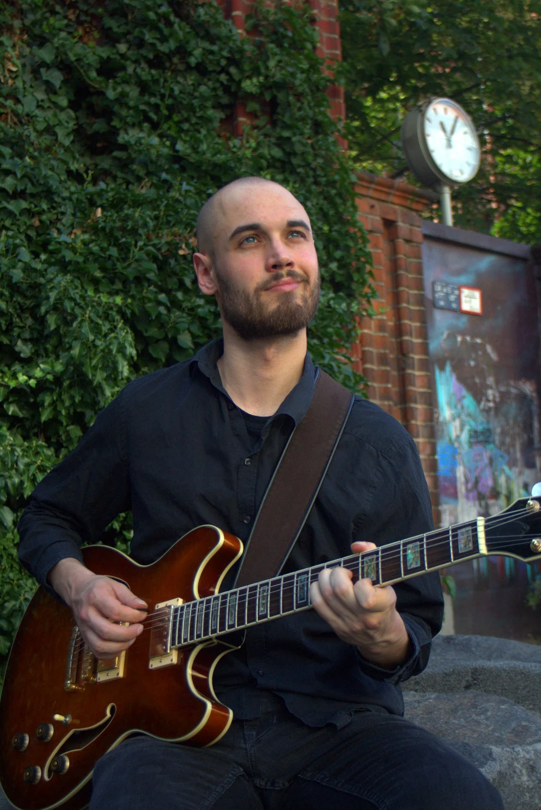 Ich bin bei Bremen auf’m Dorf mit Punkrock und Härterem, aber dennoch mit einer Schwäche für allerlei Lyrisches aufgewachsen. Wichtige Stationen auf meinem Werdegang waren die Entdeckung von Bach und Pat Metheny, Radiohead und Tom Waits. Während des Gitarrenstudiums an der Musikhochschule Münster habe ich weitere Idole entdeckt, an komplexen Harmonien gefeilt und endgültig den Jazz lieben gelernt. Gleichzeitig durfte ich verschiedene Theater- und Musicalproduktionen mit meinem Gitarrenspiel mitgestalten und mit verschiedenen Besetzungen Konzerte quer durch Deutschland spielen. 2017 dann der Umzug nach Berlin und seitdem bin ich überzeugter Wahlberliner. Größerer Teich, mehr Fische, mehr Impulse. Seit letztem Jahr geht es hin und her zwischen Berlin und Marseille. Nochmal eine andere Ecke der Welt, eine andere Spielkultur, eine andere stilistische Mischung.